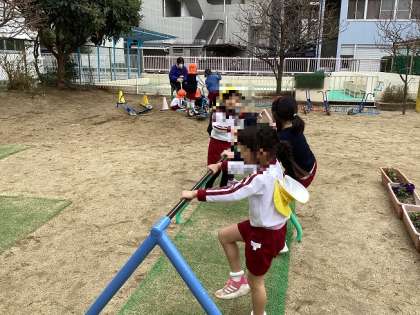 修了式前の話になりますが、3月はたくさん遊んで最後の幼稚園を楽しみました。年下の友達と「お誕生月なかま」をしたり、そら組さんとふれあい遊びをしたりしました。また、暖かくなってきたので、鬼ごっこをしたり、鉄棒や一輪車に挑戦したりと、元気いっぱい体を動かしました。4月からいよいよ小学校ですね。小学校でもたくさん挑戦して楽しんでください。