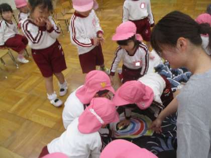 大きなこいのぼりをみて大興奮の子ども達。みんなで泳がした後、よーく見て見ると…