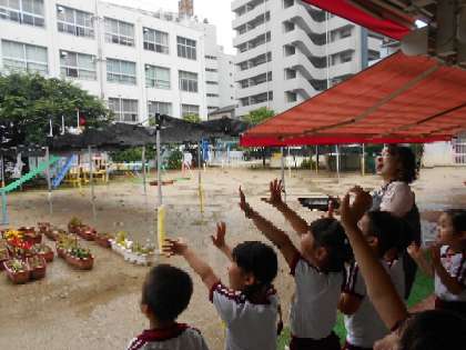 5月の中旬から、つき組のお部屋で過ごしていた2匹の青虫が、アゲハチョウになりました!
