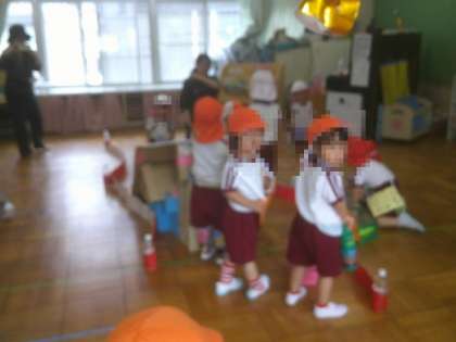 今日は夏祭りでした。朝からドキドキワクワクの子どもたち。シールカードを持ち、園内のお店に遊びに行きました。お兄ちゃんお姉ちゃんに優しく遊びを教えてもらい、楽しんでいました。「見て!いっぱいお店に行ったよ」、「もっと遊びたかったな」と部屋に帰ってきてたくさん楽しかったお話を教えてくれました。