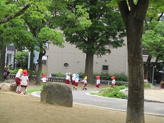 鬼ごっこやダンゴムシ探し、葉っぱ集めなど好きな遊びをめいっぱい楽しんだ子どもたちです!