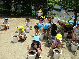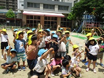 「なんかヌルヌルしてる〜」「玉ねぎのにおいする!」と収穫を喜んでいました。