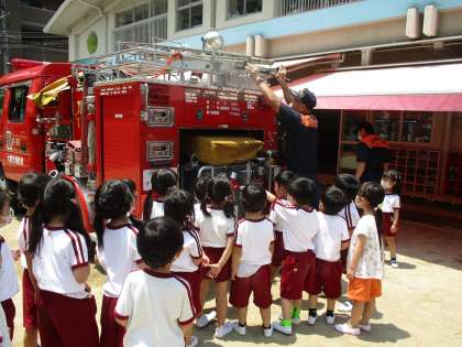 消防車を見せてもらって、みんな大興奮!大喜び!でした。