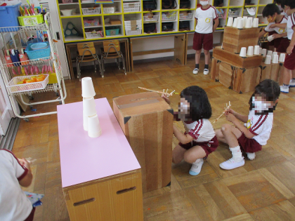 まずは自分たちが遊びを十分に楽しみながら遊び方やルールを考え、お店屋さんにつなげてきたいと思います♪