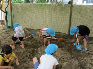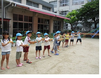 水鉄砲を使いこなす術、泥んこを楽しむ術などに挑戦し、みんなでクリアをしました。