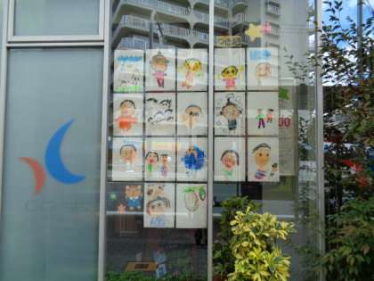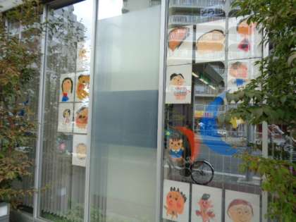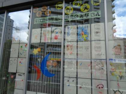 幼稚園近くの大阪厚生信用金庫に、子どもたちがかいた絵が掲示されました。