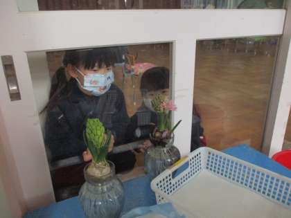 「何色の花咲くんやろう?」「球根が紫やから紫のお花ちゃう?」