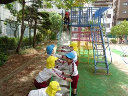 4歳児が入園し、幼稚園に子どもたちのにぎやかな声が響いています。