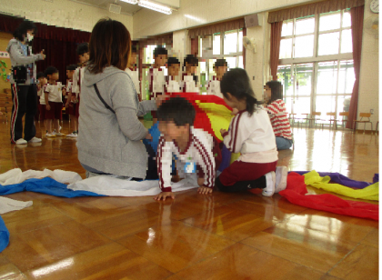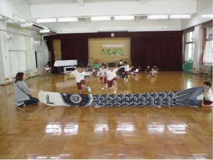 こいのぼりの上を飛んだり、ふきながしの中をくぐったりしました!
