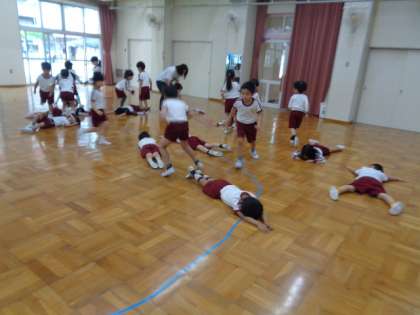 この日は、寝転んで体を伸ばしたり転がったりして体ほぐし遊びをしました。