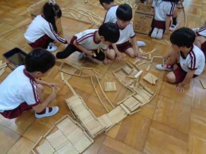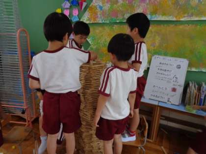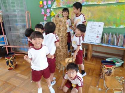 カプラを積むぞ!! 公開日 2023/06/01 更新日 2023/06/01 5歳児 「〇〇くんの背の高さまで届くかな〜」 「絶対崩れないように気をつけてな!」 と、みんなで一緒にカプラ(木製遊具)を高く積み上げました。 けっこう集中力がいるみたいです…みんな慎重に、丁寧に積んでいましたよ。 また、自由に並べて「ここが玄関」「ここがお風呂のドア」と話しながら大きな家ができました! いいね(0)