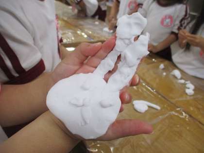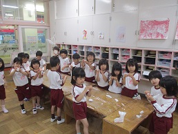 粘土をこねたり、丸めたり、思い思いに遊び始めました。
