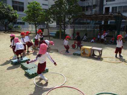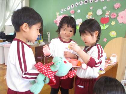 お部屋や園庭で先生や友達と一緒に遊ぶことを楽しんでいます。
