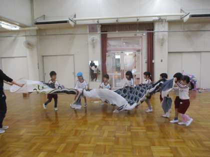 こいのぼりと遊んだよ! 公開日 2024/04/26 更新日 2024/04/26 5歳児 こいのぼりが完成すると「こいのぼり泳がしたい!!」と子どもたち。 遊戯室でこいのぼりをもってたくさん走り、泳がすことを楽しみました! また、大きなこいのぼりに子どもたちが何人並べるか、大きさも比べてみました! 「4人並んだけど、まだこいのぼりの方が大きいな、、、もう1人来て!」と、4人か5人の友達と並んでいましたよ。 大きなこいのぼりトンネル潜りはとっても気に入ったようです! いいね(0)