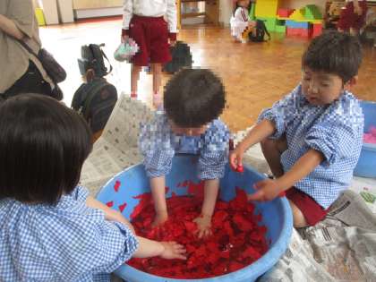 みんなで、たらいの中で画用紙を破ったので「水を入れてみたい」と子どもたち!