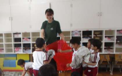 みんなでつくった大きな野菜、友達と運んだり、チームで競争することをとても楽しんでいます。