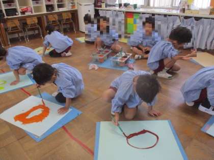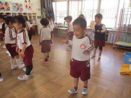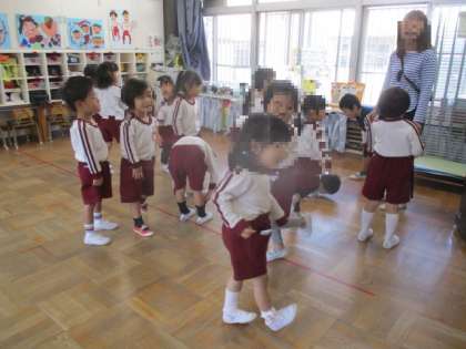 遠足後には、ばら組みんなで見てきた動物を体で表現して遊びました。