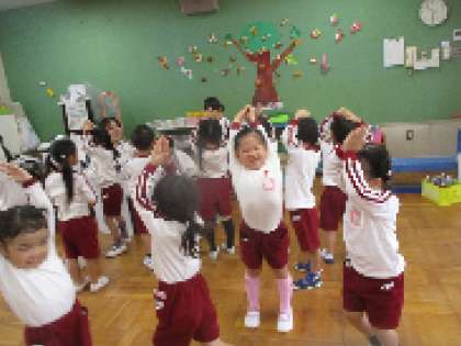 そのあとは縄跳びをしたり、みんなでつるを持って電車ごっこで幼稚園の中をぐるっと回りました。