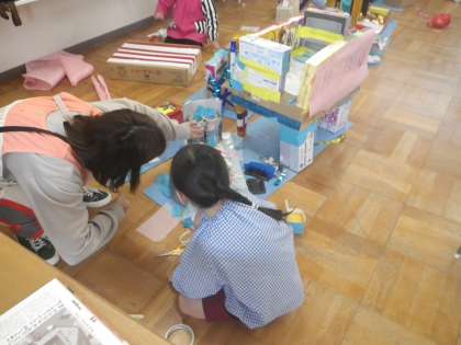 「こんな風につなげたらどう?」と友達とアイデアを出し合ったり、「〇〇ちゃんの飾り、すごくきれいだね!」と認めあったりしながら楽しく充実した時間を過ごしています。