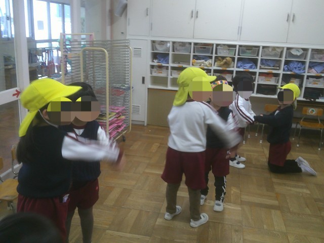 つき組との交流を行いました。3学期には、ぱんだ組とつき組でペアになり、手を繋いで遠足に出掛けるので、ペアの友達の名前を聞き、ふれあい遊びを楽しみました。部屋をペアの友達と一緒に歩き、ピアノの音に合わせて止まったりしゃがんだりしました。「今日はぱんださんに遊びに来てくれてありがとう」「今度もよろしくね」と声を掛け合っていて、次一緒に遊ぶことを楽しみにしている子どもたちでした。