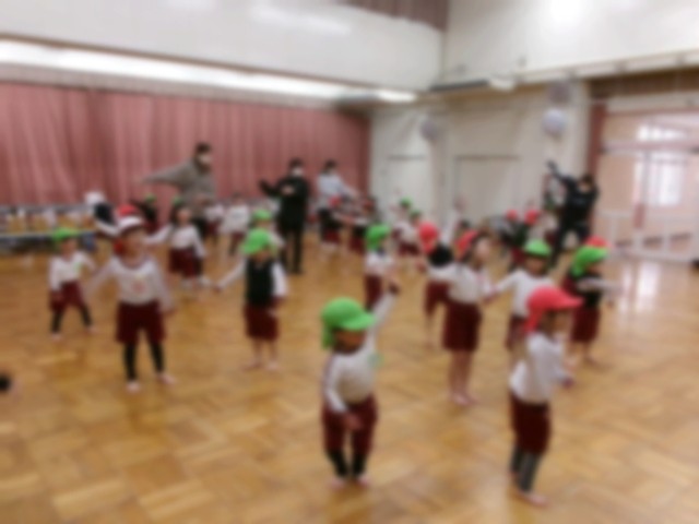 最後は、ばら組が『おばけがピーヒョロ体操』(発表会でしたダンス)を教えてあげながら、一緒に踊りました。2クラスの子どもが「あっちのほうからオバケがきたぞ~♪」と歌いながら楽しそうでした。