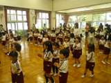 園庭で毎朝元気いっぱい遊んでいます。 この日は、みんなで楽しく体操をしました。 ...