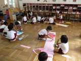 運動会で使う遊具をチームでつくりました。 画用紙を長くちぎったり、細かく切ったり...