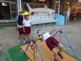 園庭では、チャレンジを頑張っています。運動会で保護者の方に見ていただく運動遊具を...