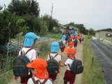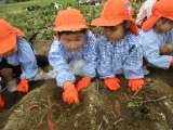 幼稚園のみんなで、寝屋農園に芋ほりに行きました。 年長児は年少児と手を繋ぎリード...