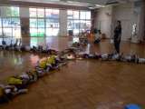 年長児で曲を聞き、ダンスの考えを出し合ったり、友達と力を合わせて組体操をしたりと...