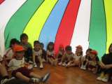 ぱんだ組さんと異年齢交流遊びをしました。 「運動会で見たパラバルーンをしてみたい...