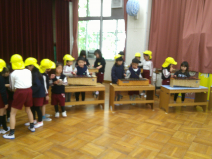 先日、つき組さん、さくら組さんと一緒に遊びました。つき組さんには楽器を教えても...