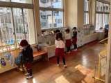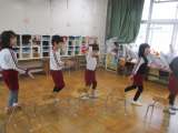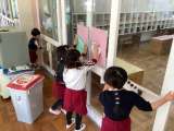 登園後、進級する準備として、自分で階段を上ってつき組の部屋で朝の用意をしました。...