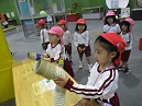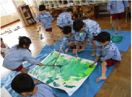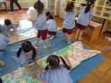 水の感触が気持ちよくなってきました。 大きなこいのぼりに、みんなで模様をつけよう...