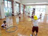 遊戯室で、フープで遊びました。 回す以外にもいろんな遊び方があるんだよと伝え、ど...