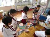 3歳児の体重測定を行いました。 5歳児が手伝いに来てくれましたよ。 測定後の保健...