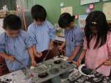 園庭の花壇の下に、もそもそとたくさんのダンゴムシを見つけました! 「大きいのはお...