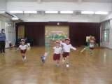 つき組さんがばら組さんのお部屋に来て、幼稚園でのお約束を教えてくれました。「廊...