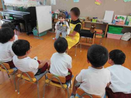おはなしの会がありました 公開日 2024/10/02 更新日 2024/10/02 子どもの様子 「絵本の会福島」の方が来てくださって、おはなしの会がありました。 楽しいお話を読んでもらったり、手遊びをしたり、マジックも見せてもらって、みんな大喜びでした♪ 今日は腹話術の人形のスナオ君も来てくれて、みんな興味津々!! お話をするスナオ君にちょっとびっくりした子もいましたが、色々質問したり、一緒にお話をしたりして、とっても楽しかったですね^-^ いいね(0)