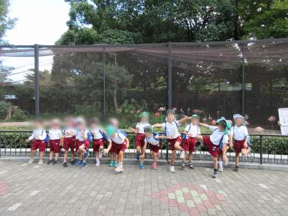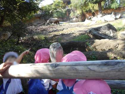 動物園に着いていろんな動物を見て、「カバさんのお口おっきい!」「ライオンさんはねんねしてるよ。眠いのかな?」など、子どもたちなりに観察し、気づいたことや感じたことを先生や友達と伝え合う姿が見られました!