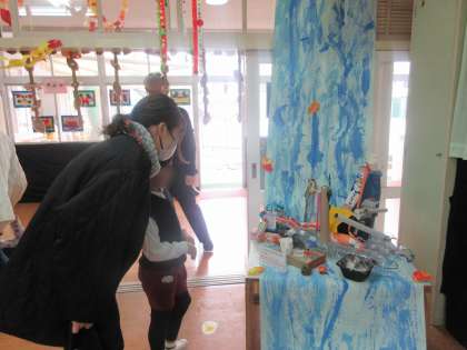 おうちの方に作品についてお話したり、一緒に見て回ったりし、楽しかったですね♪