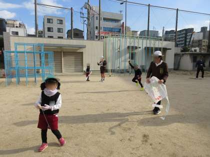 6年生のお兄さん、お姉さんといっしょに凧あげをしました。