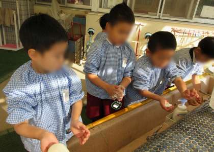 今月は「手洗い実験」をして、手洗いの大切さについて、改めて子どもたちにお話をしました。