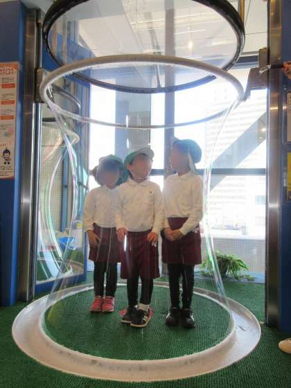 シャボン玉遊びでは、大きなシャボン玉に入って、みんな大興奮!!