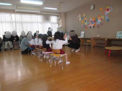 さくら組は、初めての参観で少しドキドキしていましたが、「手をたたきましょう」「パンダうさぎコアラ」を歌をきいてもらいとても嬉しそうでした。