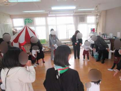 最後は、おうちの人に「おはながわらった」のお歌を披露して楽しい時間を過ごしました。