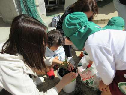 おうちの方と一緒に苗植えをしてみんなとっても嬉しそうでした。