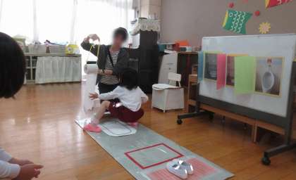 保健指導をしました 公開日 2025/05/16 更新日 2025/05/16 子どもの様子 5月に入り、体重測定と保健指導をしました。 今月は「トイレの使い方」についての話をして、洋式トイレだけでなく、和式トイレも子どもたちが使えるようにみんなでチャレンジしてみました。 初めはドキドキしながら「えーできるかな…」と不安そうな子どもたちもいましたが、他のお友達の様子を見てがんばって挑戦していたり、「できた!」と喜んだりしている姿がみられました。 いいね(0)