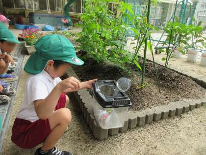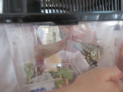大切に育てているアオムシが、チョウチョになるのを楽しみにしていた子どもたち。