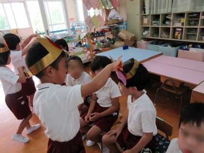 さくら組が、冠をつくってくれ誕生日のお友達にプレゼントしてくれました。
